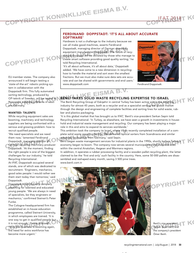 ...rocesses. The company believes new systems will be needed to recycle PE, PP and PET plastics over the medium term if recycling rates are to reach the 100% mark and the environmental pollution caused by plastic waste is to be effec- tively tackled. ...