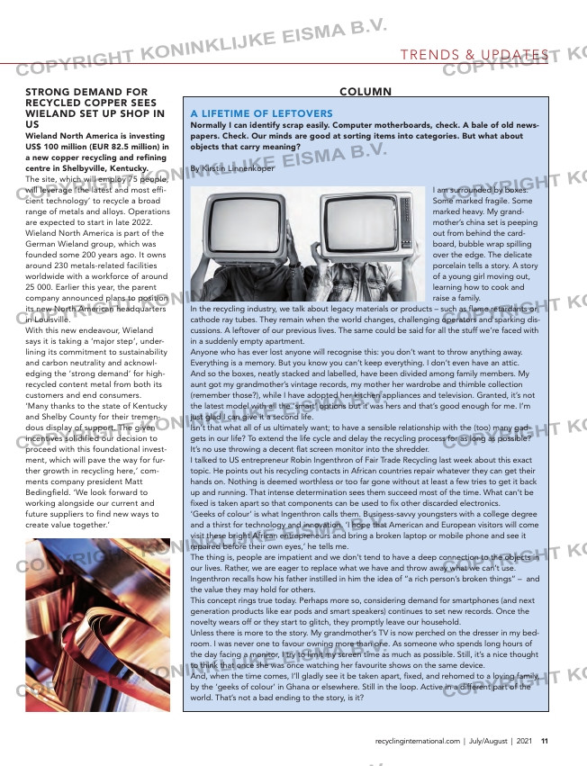 11recyclinginternational.com | July/August | 2021