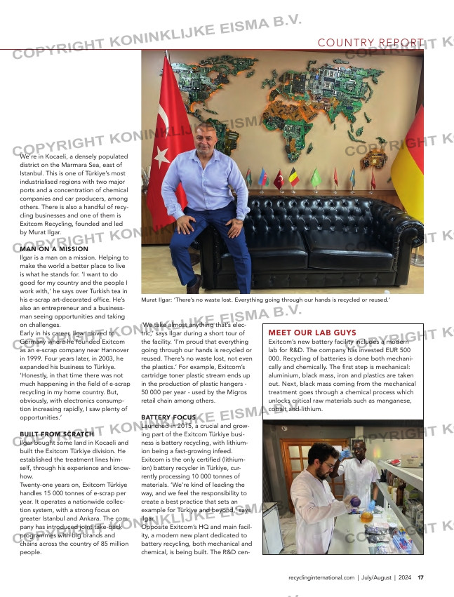 ...s one of Türkiye’s most industrialised regions with two major ports and a concentration of chemical companies and car producers, among others. There is also a handful of recy- cling businesses and one of them is Exitcom Recycling, foun...