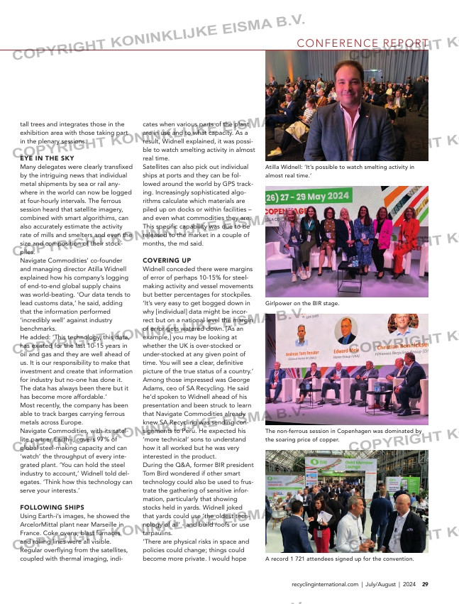 ... has always been there but it has become more affordable.’ Most recently, the company has been able to track barges carrying ferrous metals across Europe. Navigate Commodities, with its satel- lite partner Earth-i, covers 97% of global s...