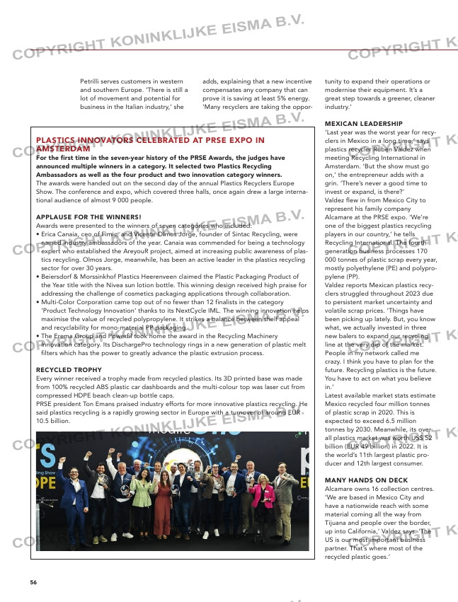 The awards were handed out on the second day of the annual Plastics Recyclers Europe