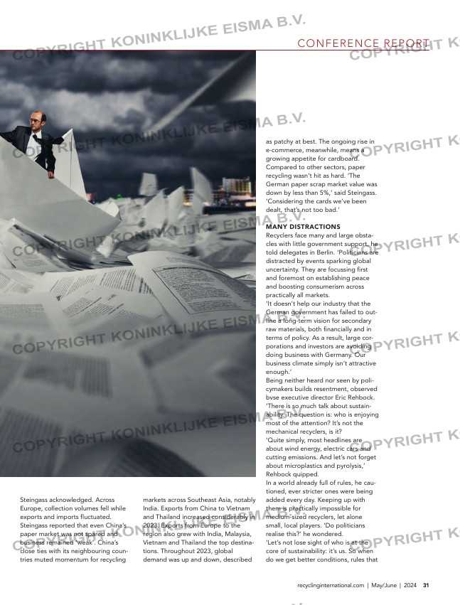 Materials and Waste Management (bvse). More ‘turbulence’ is likely, he told delegates at the paper