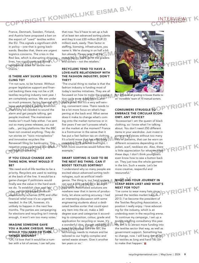 facing financial collapse. The textiles expert, who is also president of the national UK Textiles Recycling Association,