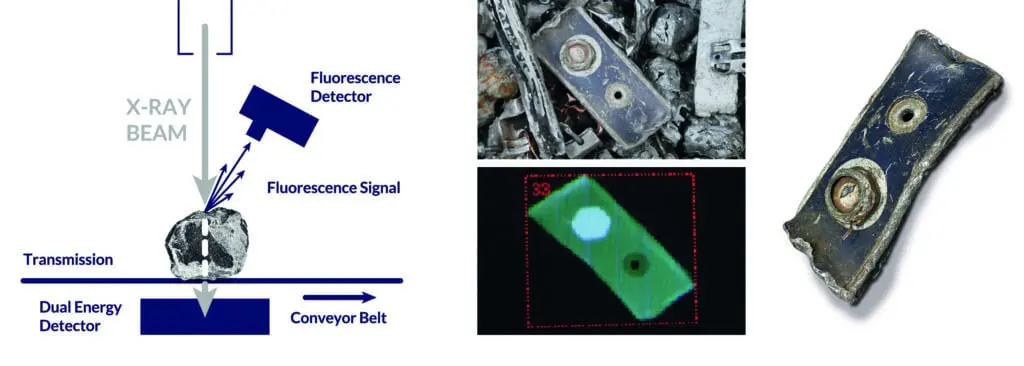 Unlike the X-ray transmission technology, the X-ray fluorescence technology is not an imaging technology which means that it does not produce images of the single pieces of metal processed but indicates the presence, concentration and nature of heavy metals.